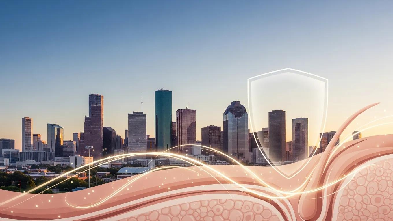 Houston accelerates skin aging through mechanisms most people don’t think about — UV intensity, infrared heat, humidity-driven barrier disruption, and particulate pollution. The damage accumulates quietly over years.